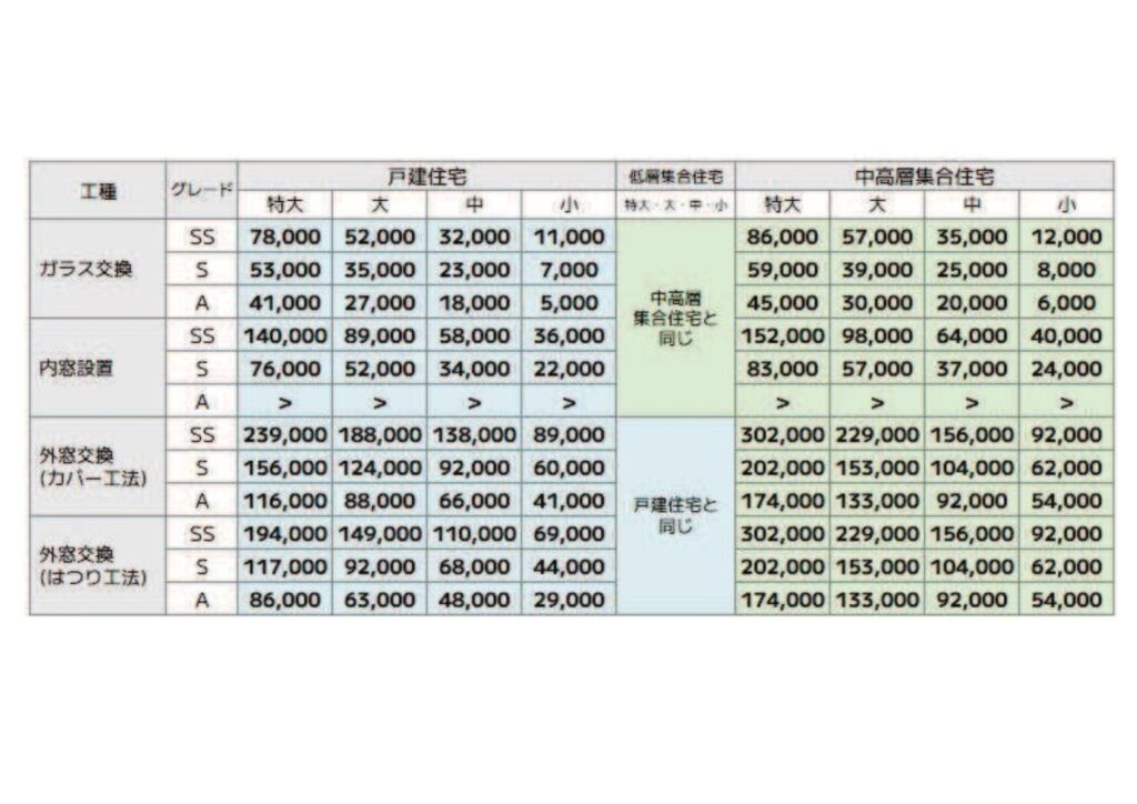 (熱貫流率(Uw値)1.9以下等、建材トップランナー制度2030年目標水準値を超えるもの、その他要件を満たすもの等) - 補助額: 1戸あたり100万円。リフォーム工事内容に応じて定める額